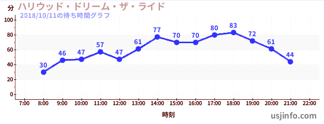 • ハリウッド・ドリーム・ザ・ライド$B$N(B2018年10月11日の待ち時間