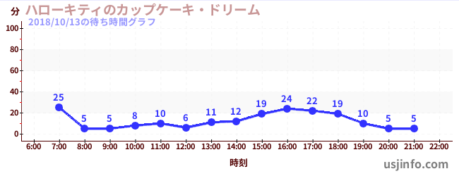 • ハローキティのカップケーキ・ドリーム$B$N(B2018年10月13日の待ち時間