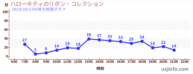 • ハローキティのリボン・コレクション$B$N(B2018年10月13日の待ち時間