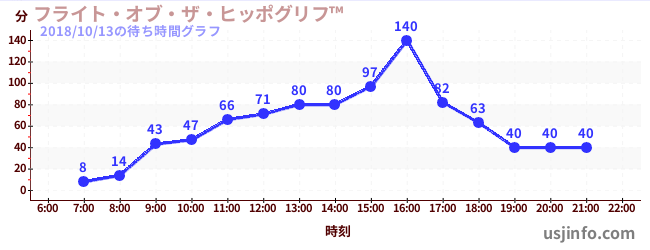• フライト・オブ・ザ・ヒッポグリフ™$B$N(B2018年10月13日の待ち時間