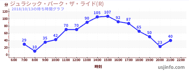 • ジュラシック・パーク・ザ・ライド(R)$B$N(B2018年10月13日の待ち時間