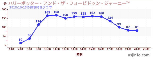 • ハリーポッター・アンド・ザ・フォービドゥン・ジャーニー™$B$N(B2018年10月13日の待ち時間