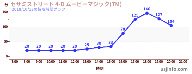 • セサミストリート 4-D ムービーマジック(TM)$B$N(B2018年10月13日の待ち時間
