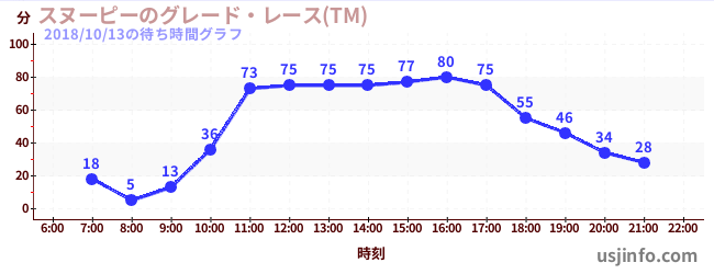 • スヌーピーのグレード・レース(TM)$B$N(B2018年10月13日の待ち時間