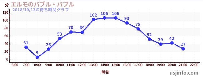 • エルモのバブル・バブル$B$N(B2018年10月13日の待ち時間