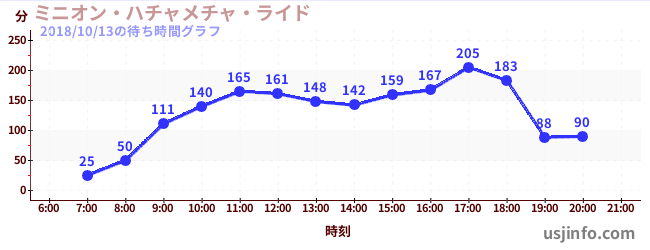 • ミニオン・ハチャメチャ・ライド$B$N(B2018年10月13日の待ち時間
