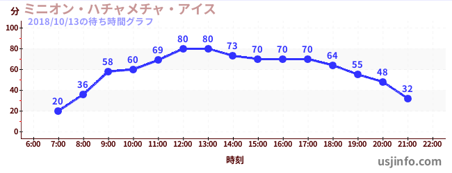 • ミニオン・ハチャメチャ・アイス$B$N(B2018年10月13日の待ち時間