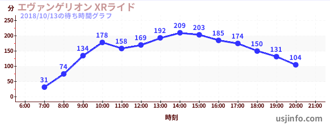 • エヴァンゲリオン XRライド$B$N(B2018年10月13日の待ち時間