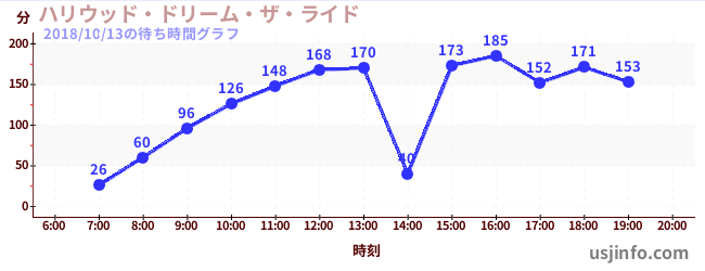 • ハリウッド・ドリーム・ザ・ライド$B$N(B2018年10月13日の待ち時間