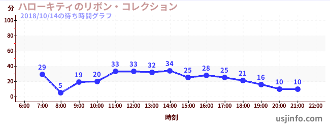 • ハローキティのリボン・コレクション$B$N(B2018年10月14日の待ち時間