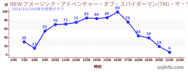 • NEW アメージング・アドベンチャー・オブ・スパイダーマン(TM)・ザ・ライド 4K3D$B$N(B2018年10月14日の待ち時間