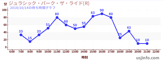 • ジュラシック・パーク・ザ・ライド(R)$B$N(B2018年10月14日の待ち時間