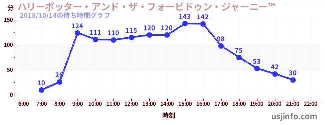 • ハリーポッター・アンド・ザ・フォービドゥン・ジャーニー™$B$N(B2018年10月14日の待ち時間