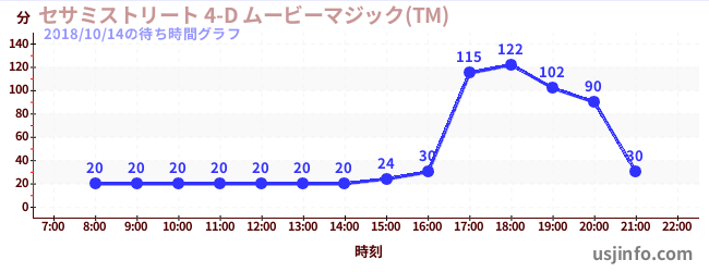 • セサミストリート 4-D ムービーマジック(TM)$B$N(B2018年10月14日の待ち時間