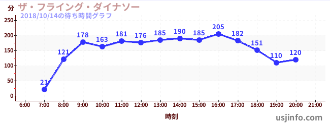 • ザ・フライング・ダイナソー$B$N(B2018年10月14日の待ち時間