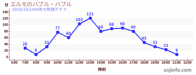 • エルモのバブル・バブル$B$N(B2018年10月14日の待ち時間