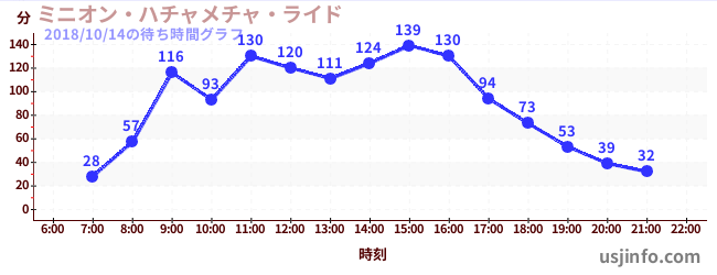 • ミニオン・ハチャメチャ・ライド$B$N(B2018年10月14日の待ち時間
