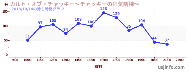 • カルト・オブ・チャッキー~チャッキーの狂気病棟~$B$N(B2018年10月14日の待ち時間