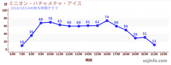 • ミニオン・ハチャメチャ・アイス$B$N(B2018年10月14日の待ち時間