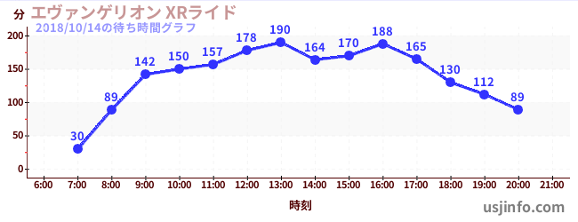 • エヴァンゲリオン XRライド$B$N(B2018年10月14日の待ち時間