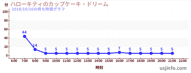 • ハローキティのカップケーキ・ドリーム$B$N(B2018年10月16日の待ち時間