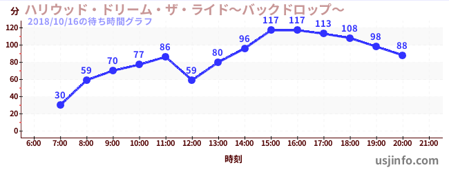 • ハリウッド・ドリーム・ザ・ライド〜バックドロップ〜$B$N(B2018年10月16日の待ち時間