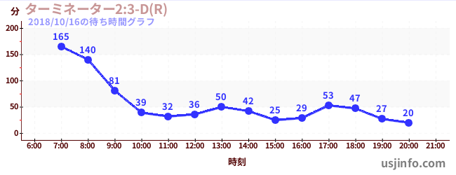 • ターミネーター2:3-D(R)$B$N(B2018年10月16日の待ち時間