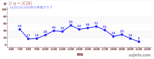 • ジョーズ(R)$B$N(B2018年10月16日の待ち時間