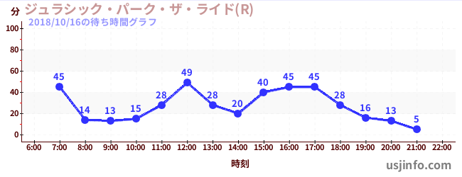 • ジュラシック・パーク・ザ・ライド(R)$B$N(B2018年10月16日の待ち時間