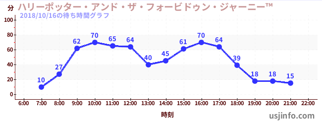 • ハリーポッター・アンド・ザ・フォービドゥン・ジャーニー™$B$N(B2018年10月16日の待ち時間