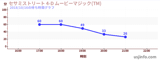 • セサミストリート 4-D ムービーマジック(TM)$B$N(B2018年10月16日の待ち時間