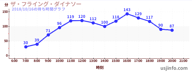 • ザ・フライング・ダイナソー$B$N(B2018年10月16日の待ち時間