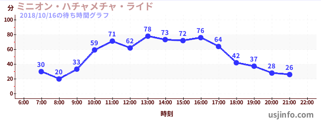 • ミニオン・ハチャメチャ・ライド$B$N(B2018年10月16日の待ち時間