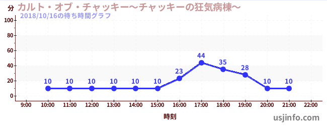 • カルト・オブ・チャッキー~チャッキーの狂気病棟~$B$N(B2018年10月16日の待ち時間