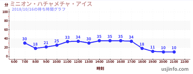 • ミニオン・ハチャメチャ・アイス$B$N(B2018年10月16日の待ち時間