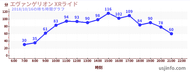 • エヴァンゲリオン XRライド$B$N(B2018年10月16日の待ち時間