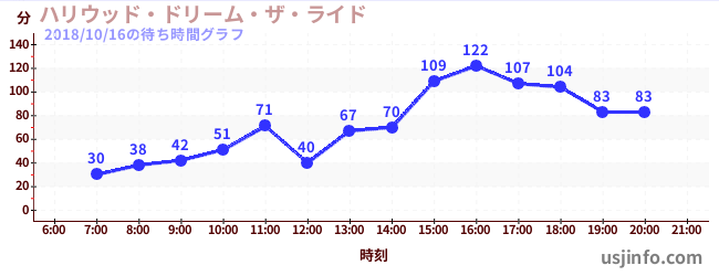 • ハリウッド・ドリーム・ザ・ライド$B$N(B2018年10月16日の待ち時間