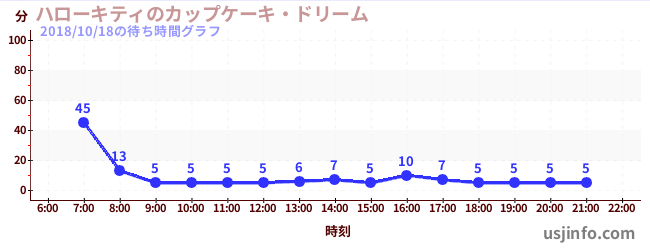 • ハローキティのカップケーキ・ドリーム$B$N(B2018年10月18日の待ち時間