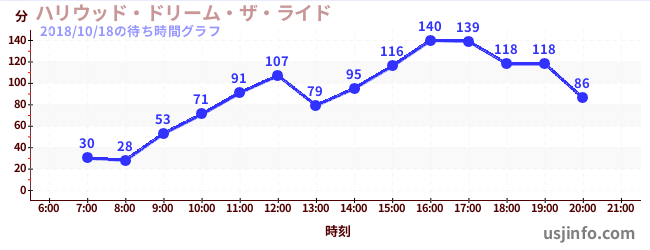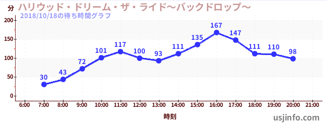 • ハリウッド・ドリーム・ザ・ライド$B$N(B2018年10月18日の待ち時間