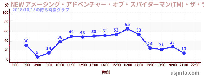 • NEW アメージング・アドベンチャー・オブ・スパイダーマン(TM)・ザ・ライド 4K3D$B$N(B2018年10月18日の待ち時間