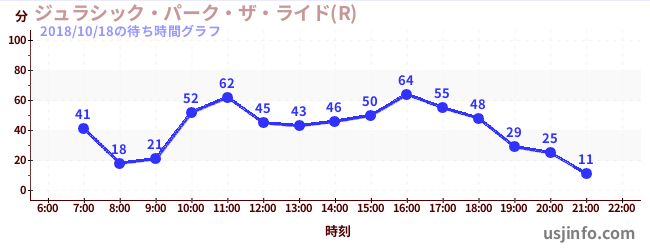 • ジュラシック・パーク・ザ・ライド(R)$B$N(B2018年10月18日の待ち時間