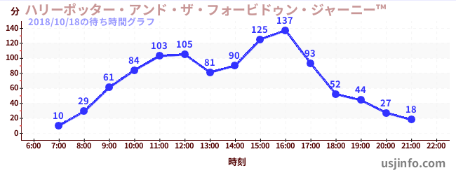 • ハリーポッター・アンド・ザ・フォービドゥン・ジャーニー™$B$N(B2018年10月18日の待ち時間