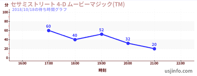 • セサミストリート 4-D ムービーマジック(TM)$B$N(B2018年10月18日の待ち時間