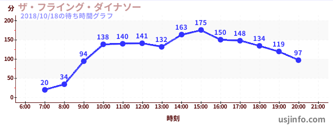 • ザ・フライング・ダイナソー$B$N(B2018年10月18日の待ち時間