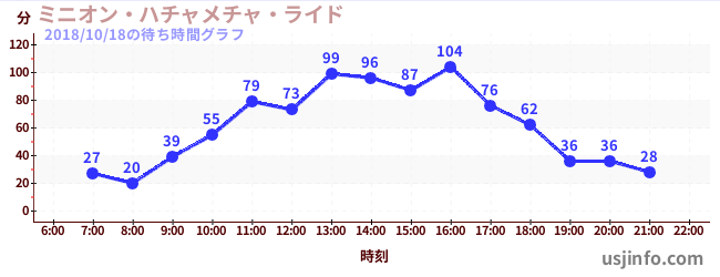 • ミニオン・ハチャメチャ・ライド$B$N(B2018年10月18日の待ち時間