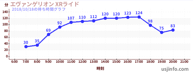 • エヴァンゲリオン XRライド$B$N(B2018年10月18日の待ち時間
