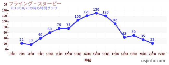 • フライング・スヌーピー$B$N(B2018年10月20日の待ち時間