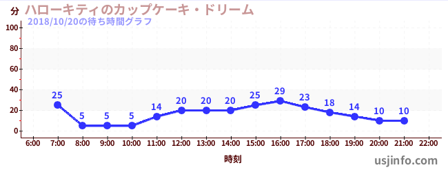 • ハローキティのカップケーキ・ドリーム$B$N(B2018年10月20日の待ち時間