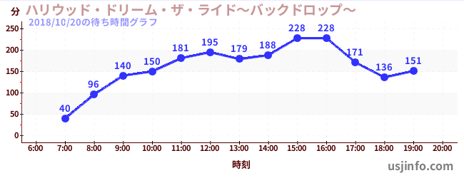 • ハリウッド・ドリーム・ザ・ライド〜バックドロップ〜$B$N(B2018年10月20日の待ち時間