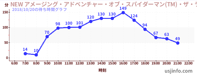 • NEW アメージング・アドベンチャー・オブ・スパイダーマン(TM)・ザ・ライド 4K3D$B$N(B2018年10月20日の待ち時間